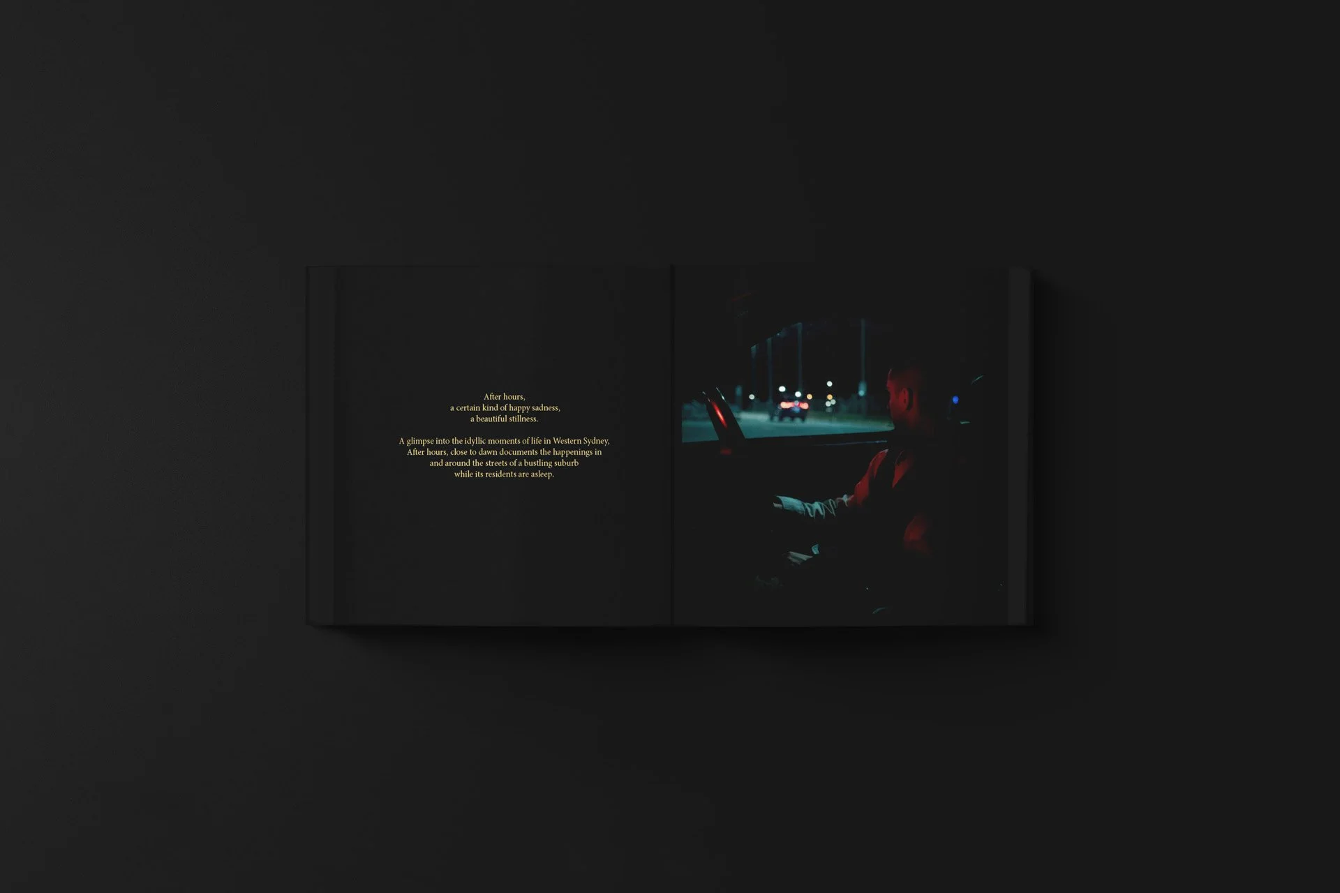 After hours, close to dawn is a photo book that documents the happenings in and around the streets of a bustling city while its residents are asleep.